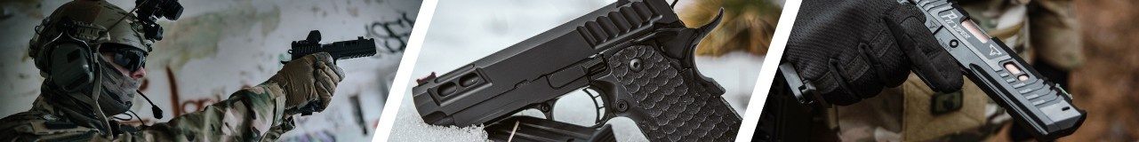 Specialitatea brandului este familia Hi-Capa și 1911, incluzând modele TTI licențiate oficial, precum Pit Viper și Sand Viper, prezentate în filmele John Wick. Aceste replici integral metalice oferă încărcătoare double-stack de 28 de cartușe cu plăci de bază practice, butoane de eliberare a încărcătorului mărite pentru reîncărcare rapidă, magwell-uri evazate și siguranțe ambidextre. Fiecare pistol dispune de sistem hop-up reglabil, plăci de montare pentru dispozitive optice de tip red dot, șine integrate pentru accesorii și texturare agresivă a mânerului pentru o priză sigură în orice condiții. Modelele includ țevi de 5 inci cu compensatoare și filet CCW 11x1 pentru compatibilitate cu amortizoare de sunet.